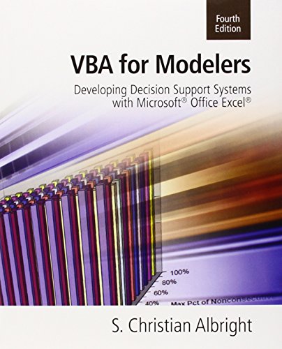 Chris Albright's VBA FOR MODELERS, 4TH EDITION is an essential tool for helping you learn to use Visual Basic for Applications (VBA) as a means to automate common spreadsheet tasks, as well as to create sophisticated management science applications. VBA is the programming language for Microsoft Office. VBA FOR MODELERS contains two parts. The first part teaches the essentials of VBA for Excel. The second part illustrates how a number of management science models can be automated with VBA. From a user's standpoint, these applications hide the details of the management science techniques and instead present a simple user interface for inputs and results.